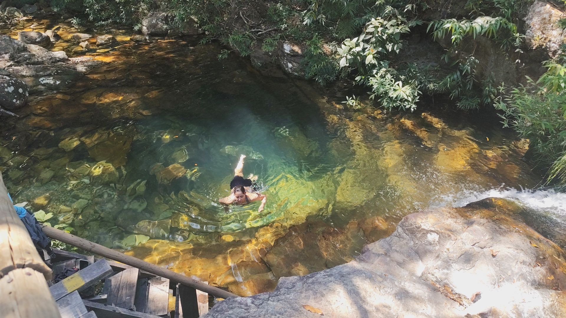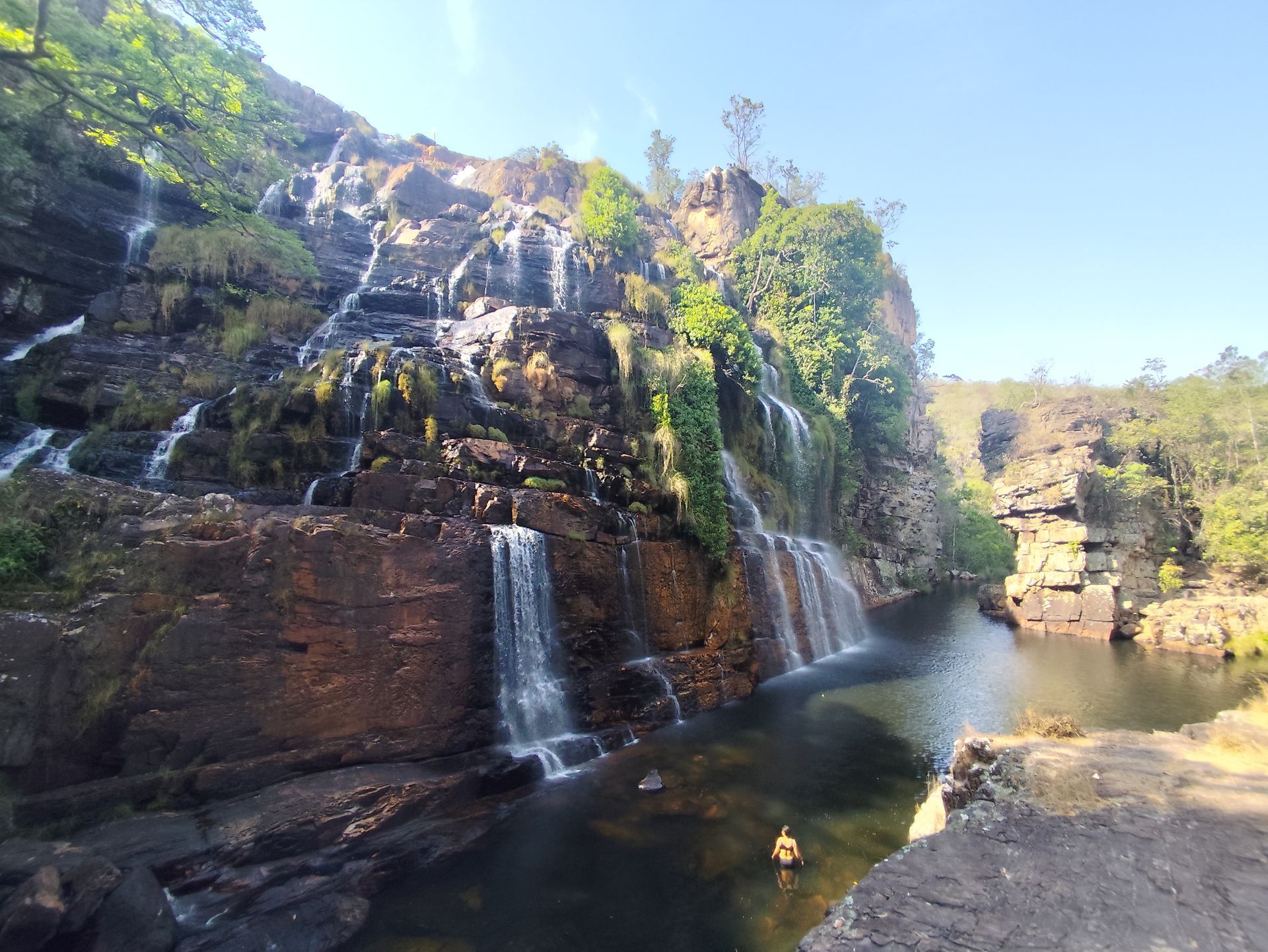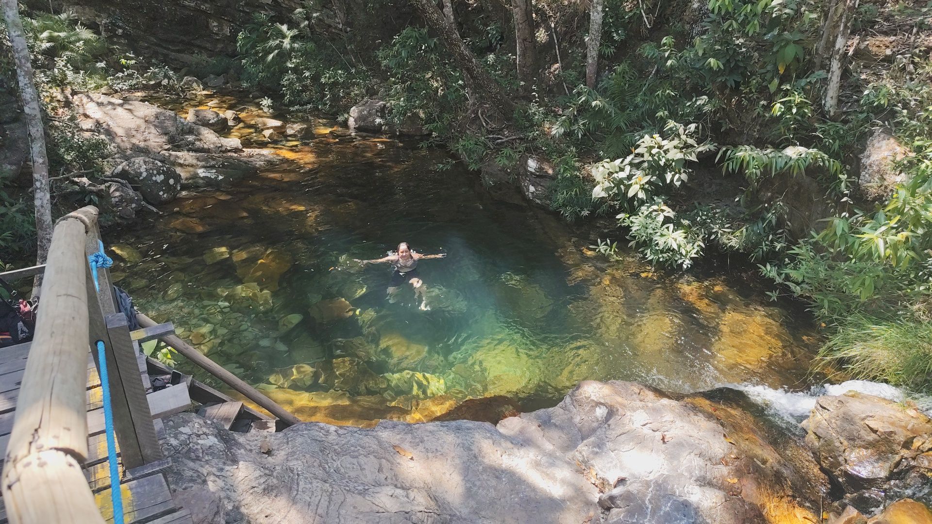 Com uma queda d’água de 28 metros, rodeada pela intocável vegetação do cerrado que a cerca e um poço de águas cristalinas de cor azul turquesa, a Cachoeira Santa Bárbara com certeza é o destino mais procurado da Chapada dos Veadeiros.